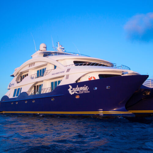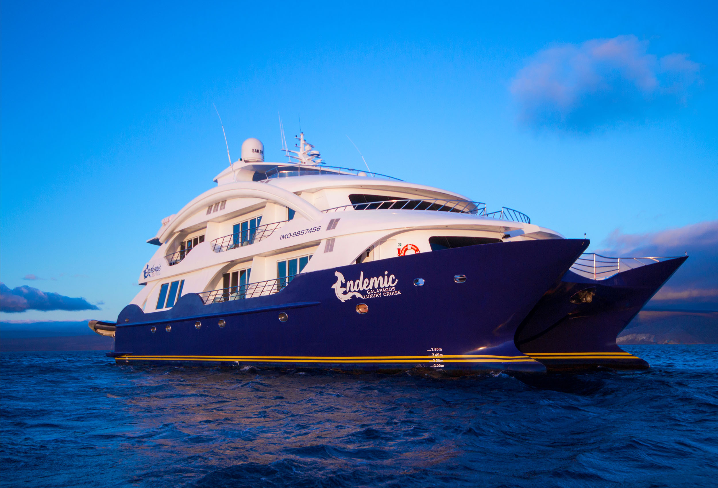 The M/C Endemicis (Endemic) the newest luxury catamaran cruising the Galapagos Islands. has a capacity for 16 passengers, eleven crew members plus Galapagos National Park certified guide, offering a service ratio of almost one to one.